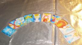 Motive von links: Nr.4. Lichtbote, Nr.5. Engel der Heilung auf allen Ebenen, Nr.6. Engel des Himmels und der Erde, Nr.7. Gnadenengel, Nr.8. Auferstehungsengel, Nr.9. Engel der Liebe, Nr.10. Metatron, Nr.11. Gelber Flammenengel, Nr.12. Engel der Freude, Nr.13. Erfolg