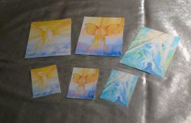 Motive von links: Nr.1. zarter Engel, Nr.2. Engel (Aquarell), Nr.3. Einhorn