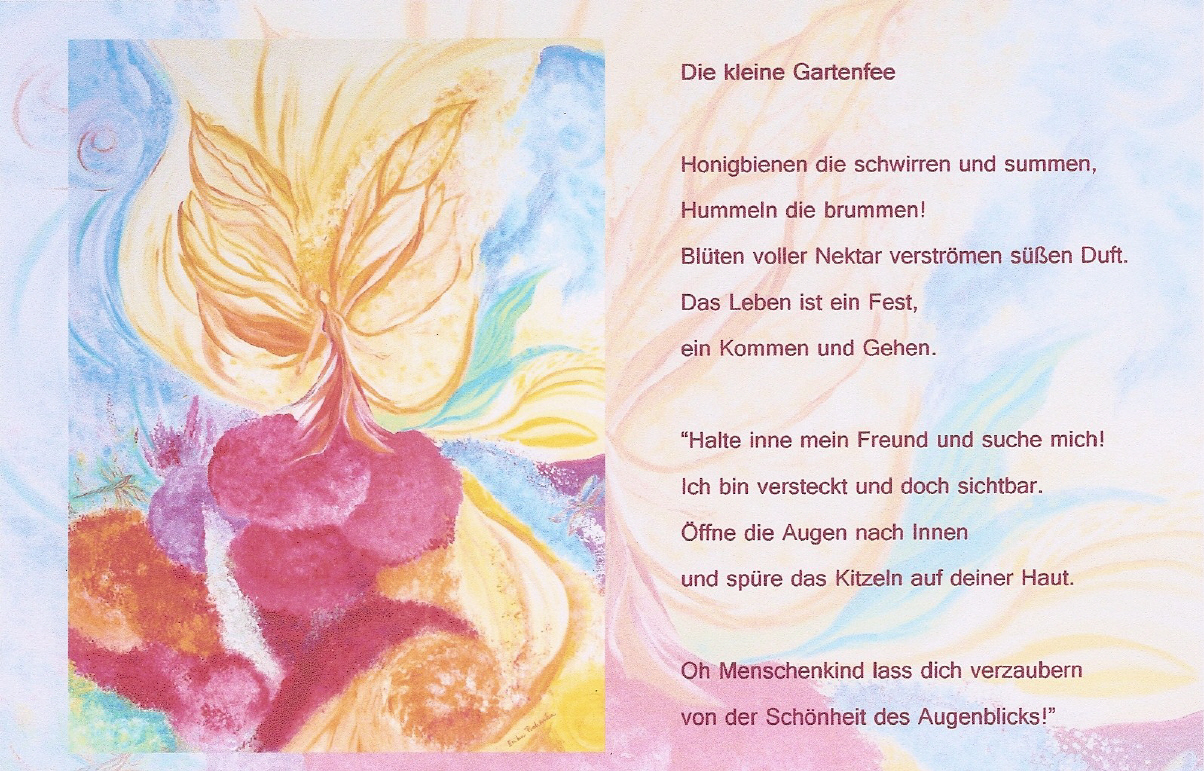 Dieser Band enthält Gedichte, die zur Kontemplation und Meditation einladen und ist mit von mir gemalten Bildern illustriert. Er ist mit einer Kalenderbindung versehen, so dass man ihn mit der gerade gewünschten Seite aufhängen kann. Er enthält 19 von mir verfasste Gedichte.